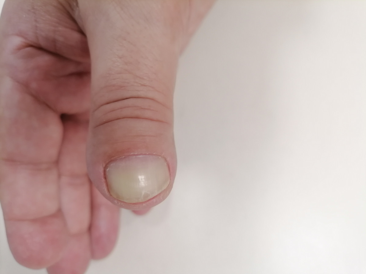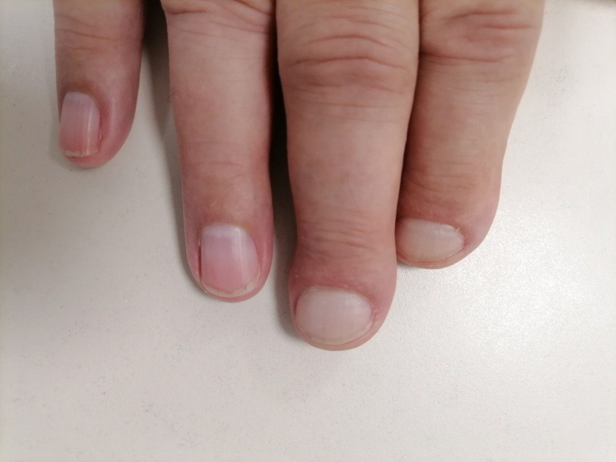 Akro-osteolýzu občas vidíme, hlavně u pacientů se sklerodermií. Ale to je většinou terminálně uložené. Tento typ midshaft (band) lysis jsem nikdy neviděl. Hledal jsem podobné případy v literatuře. Našel jsem dva případy u kytaristů. Jeden z nich je velice podobný svým vzhledem lýzy uložené pásovitě uprostřed distálních článků. Druhý případ je méně podobný. U obou jsou ale lýzy přítomné jen na levé ruce.