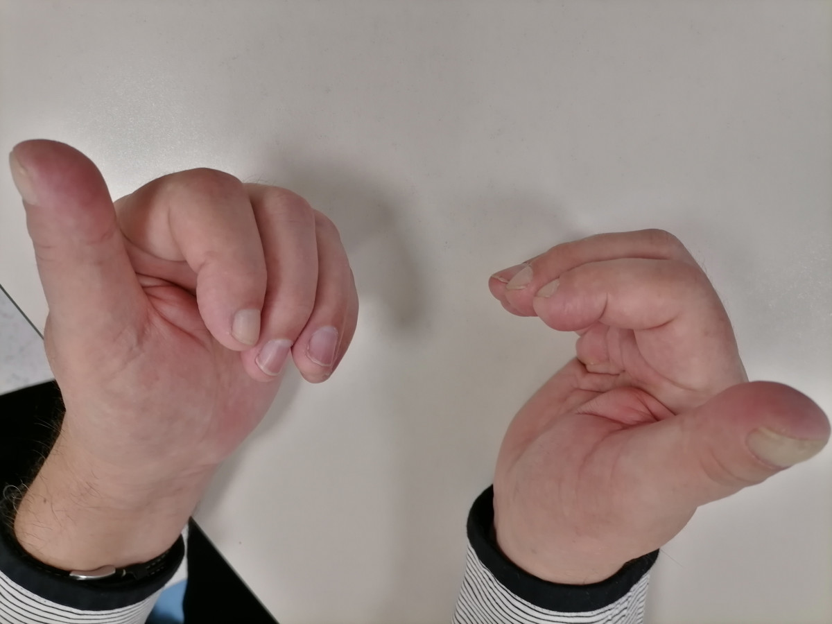 Vážené odborné kolegium. Obracím se na Vás se žádostí o radu s diferenciální diagnostikou pacienta s akrální osteolýzou distálních článků 1.-3. prstu pravé a 1.-2. prstu levé ruky, které se vyvinuly během necelých dvou let. Pacient je 67letý muž, nekuřák, profesí učitel, hraje na kytaru, v rodině bez přítomnosti revmatologických či autoimunitních onemocnění. V anamnéze nemá příznaky Raynaudova syndromu, lupénku, úraz rukou, vystavování rukou nadměrné zátěži či chladu ani expozici polyvinylchloridu. Také nemá v rodině žádné vrozené onemocnění postihující kosti či lupénku. V 4/2022 byla u něj provedena operace syndromu karpálního tunelu vlevo, v 6/2022 byla provedena operace syndromu karpálního tunelu vpravo. Od operace u něho dochází postupně k bolestivému omezení pohyblivosti prstů na obou rukou a asi rok od operace (od léta 2023) se vyvíjí zkrácení a rozšíření distálních článků 1. -3. prstu vpravo a 1.-2. prstu vlevo, na stejných prstech dochází ke ztrátě průhlednosti nehtů (nehty jsou mléčně zabarvené, ale hladké). Pro problémy se šlachami byla 11.1.2024 provedena operace flexorových šlach prstů pravé ruky (1.-5. prst) ve Vysoké n. Jizerou zatím bez většího efektu.