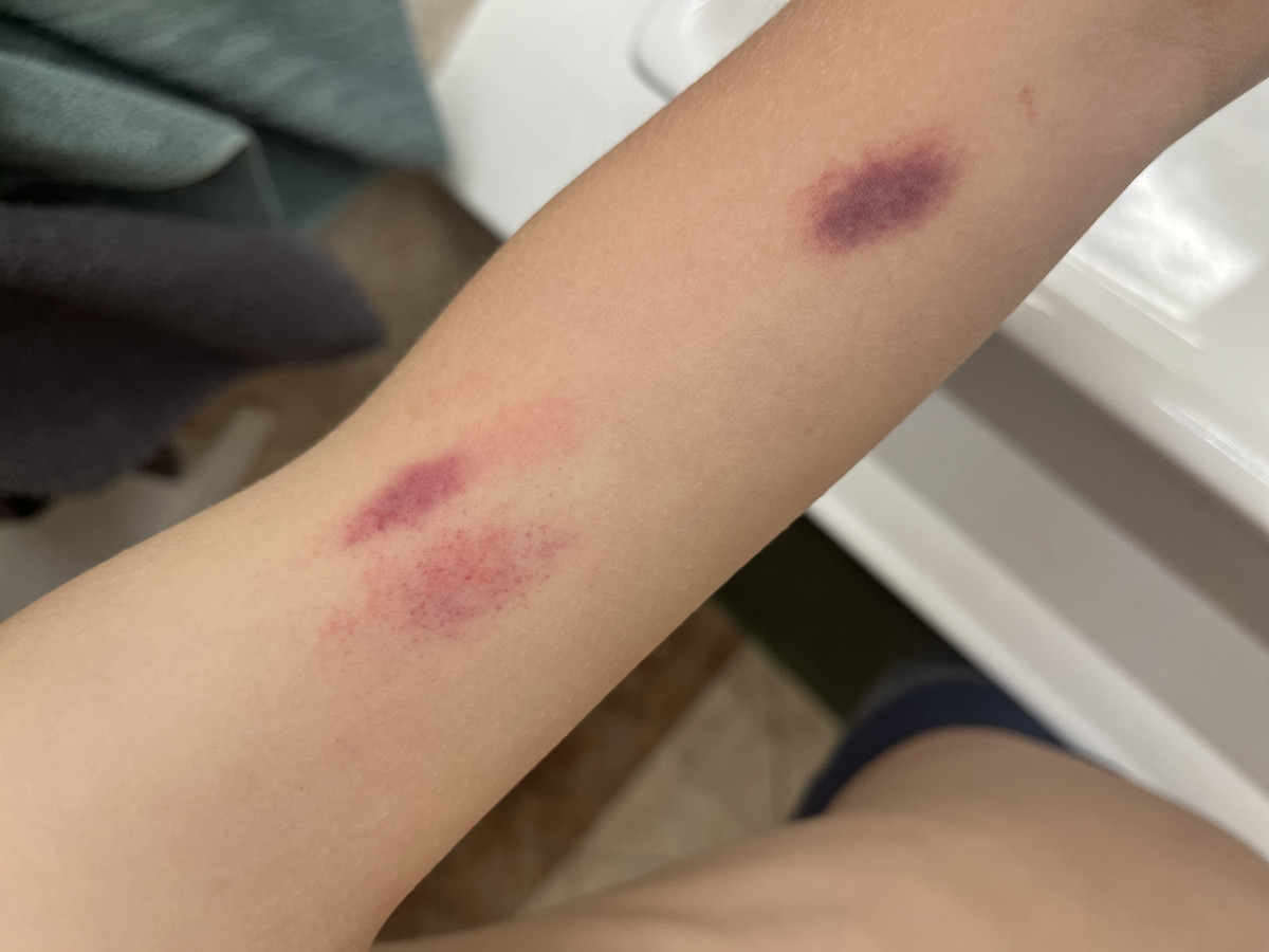 Dobrý den, dovoluji si Vám předložit souhrn informací, které se týkají mého pacienta /10 let/ Od roku 2019 má chlapec opakovanou cephaleu , nauseu , subfebrilie .Od roku 2019 je veden na Neuologické klinice a léčen antiepileptiky. Aktuálně Orfiril long 150 mg, 1-0-1. V roce 2023 se objevilo na kůži pravého dorza nohy plastický, palpa. citlivý útvar viz foto, který se během dalších měsíců rozšířil do plochy postupně ztmavnul-viz foto. V IV/024 přišly - nově - symetrická podlouhlé haematomy na HKK - viz foto, provázené subfebriliemi . Tento klinický obraz se opakuje až do současných dnů , není již provázen ferbiliemi , ale pravidelně je provázen těžkou cephaleu , ale také velmi silné artralgie / SI skloubení a nebo drobné ruční klouby, naposledy provázený výraznou dušností a bolestí na hrudi/ Z laboratorních výsledků vybíráme : ANA,ENA,ANCA- negativní v jakékoliv fázi procesu. Stejně tak negativní CRP. Urea opakovaně lehce nad normu,Nepravidelně je vyšší hodnota kreatininu a kys. močové. V minulosti vysoká hodnota Prolaktinu, Také se objevila vyšší hladina S-SHBG. Nepravidelně lehce zvýšené jaterní testy . Při poslední atace onemocnění byla odebrána biopsie kůže v místě haematomu na HKK : Epidermis přiměřená, V koriu je minimální lymfoplazmocellulární zánětlivý infiltrát, lokalizovaný perivaskulárně .Podkoží je bez pozoruhodností. Dále byl proveden odběr krve v období ataky / ve stejný den jako biopsie/ : +++ pozitivní protilátky proti endotelu, CIK PEG 54, Beta-2-Glykoprotein IgM 5,7 . KO - vyšší hladina bazofylů a lymfocytů , ostatní norma. Hematologicky opakovaně kompletně vyšetřen, vždy bez pozoruhodností. Úraz či násilí byly vyloučeny.