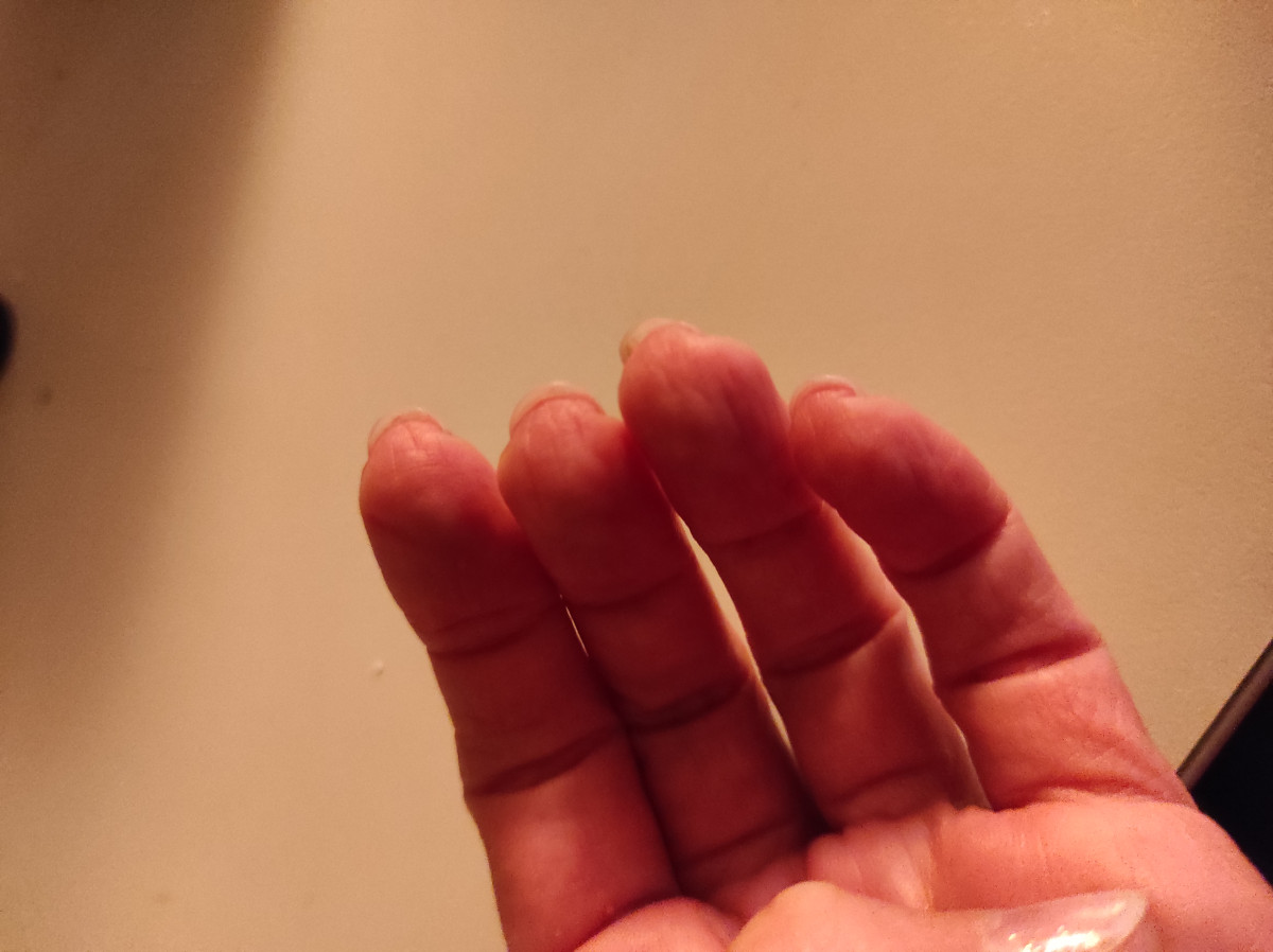 Dobrý den, nemohu si vzpomenout u kterého revmatického onemocnění jsou na prstech rukou čárky. Marně pátrám v paměti. Viz foto. Pacientka s autoimunitami - M.Crohn, Hashimotova threoiditida, astma, lymfocytarní vaskulitida, alergie. 40 let, žena, léčena azathioprimem. Dále HN. Odeslat na revmatologii? Děkuji.