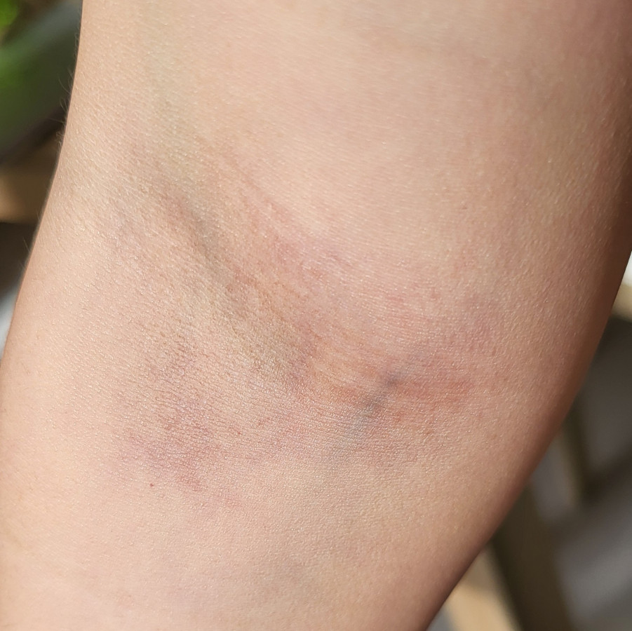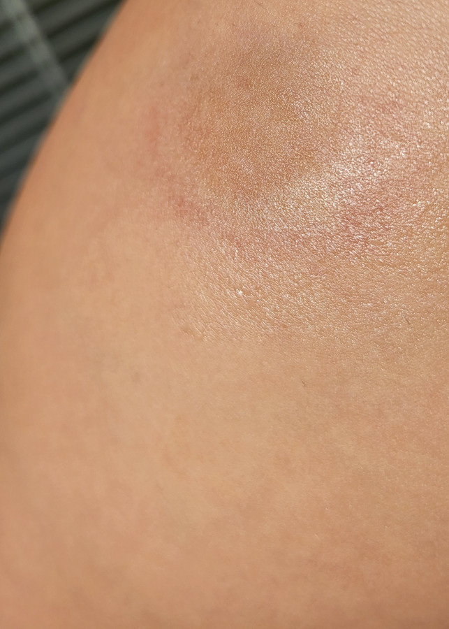 Jedná se o 14letou pacientku.Před cca 3-4 lety se jí na těle vytvořily jakési pigmentované skvrny, kožní vyšetření, vč.biopsie nenalezlo nic. Nyní se jí vytvořilo ložisko nové, které má lehce zarudlé okraje. Přikládám foto. Z jedné léze byla odebrána biopsie, proto to malé centrální vyblednutí. U loketní jamky to následovalo po kanyle, nyní se ložisko objevilo týden po očkování Boostrixem. Jsem příznivcem očkování, nechci to na toto svádět, ale udávám radši vše. První projevy následovaly po třech očkování Comirnaty. Velice děkuji za Vaše reakce.